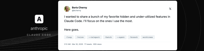 Boris Černi, kreator Claude Codea u Anthropicu, objavio je listu od 15 manje poznatih funkcija — od mobilne aplikacije i automatizovanih petlji do glasovnog unosa i prilagođenih agenata.