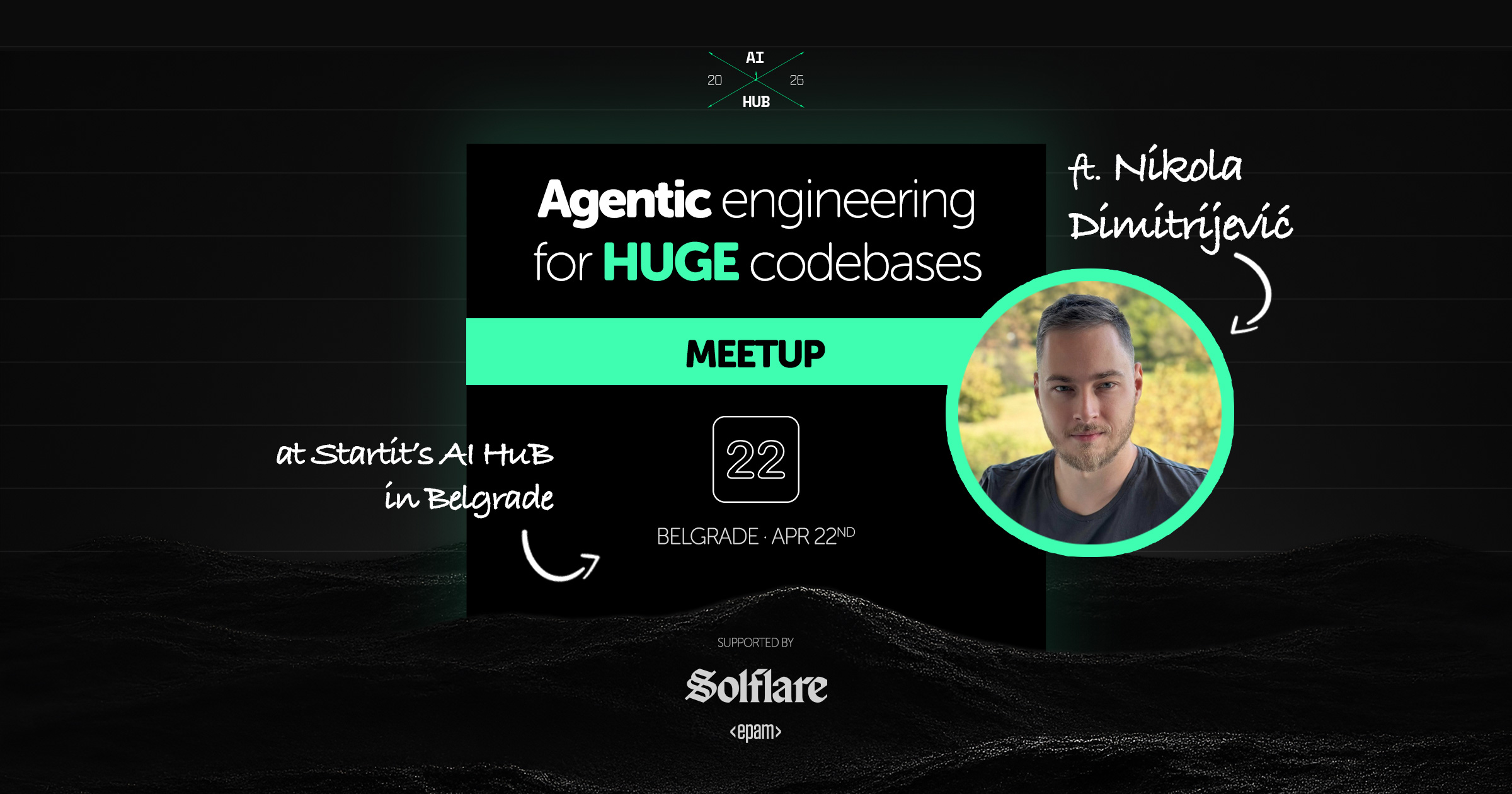 U sredu, 22. aprila, organizujemo novi AI Hub meetup sa početkom u 18 časova u Startitovom beogradskom AI Hubu. Ovaj događaj je deo serijala od 100+ AI Hub događaja u 2026. koji pomažu IT zajednici da se uspešno prilagodimo AI transformaciji.